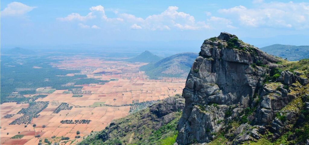The first highlight is the Kuravan and Kuruthi statues. I still remember reaching there—the wind blowing strong, the statues standing tall, and the valleys spreading endlessly below. It feels like the hill itself is alive, cheering you on. From here, the trek continues to the hilltop viewpoint. And wow—the view is something else. Rolling hills, green valleys, and the distant plains of Tamil Nadu… it’s magical.